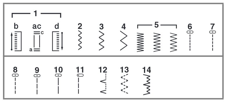 - 14 šijacích programov - rovné a kľukaté stehy