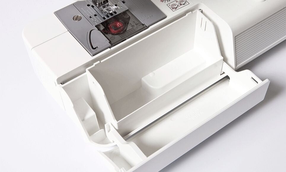- Voľné rameno pre ľahké šitie uzavretých kruhov (napr. rukávov alebo nohavíc)