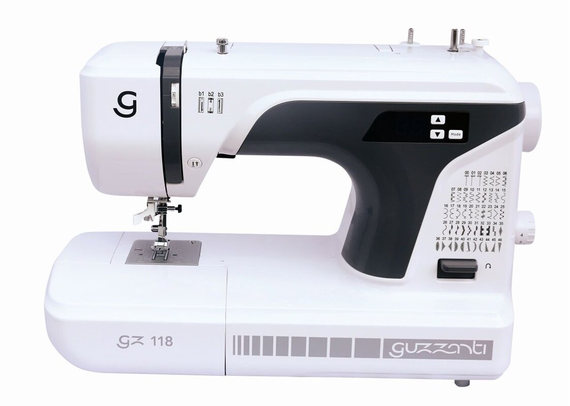 Šijací stroj Guzzanti GZ 118 je elektronický šijací stroj určený na základné až bežné domáce šitie. Stroj ponúka 50 typov šijacích programov vr. overlockových stehov a 4 krokové gombíkové dierky.