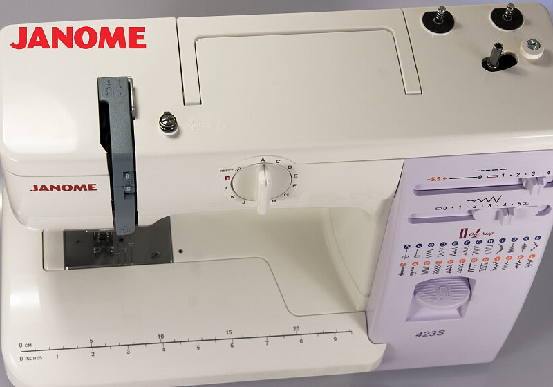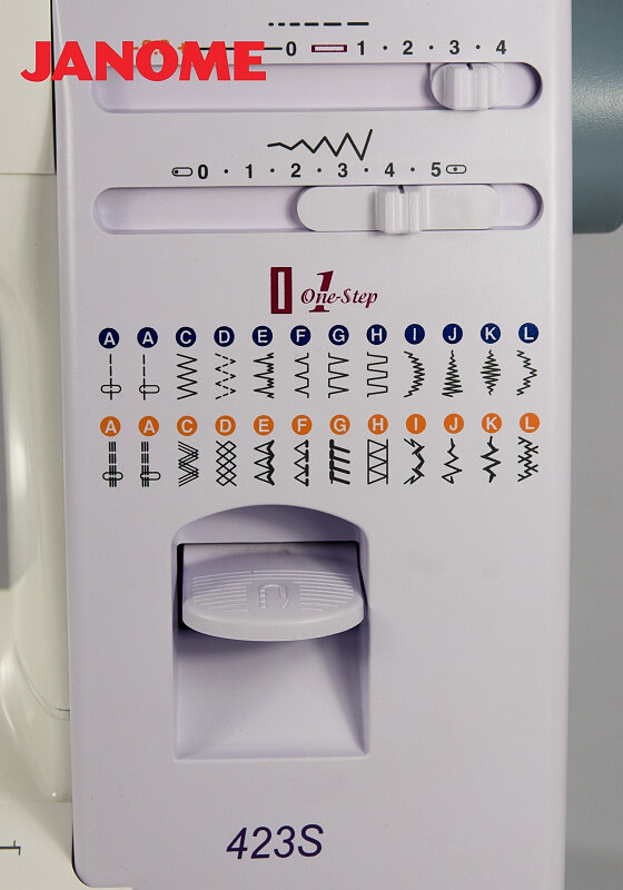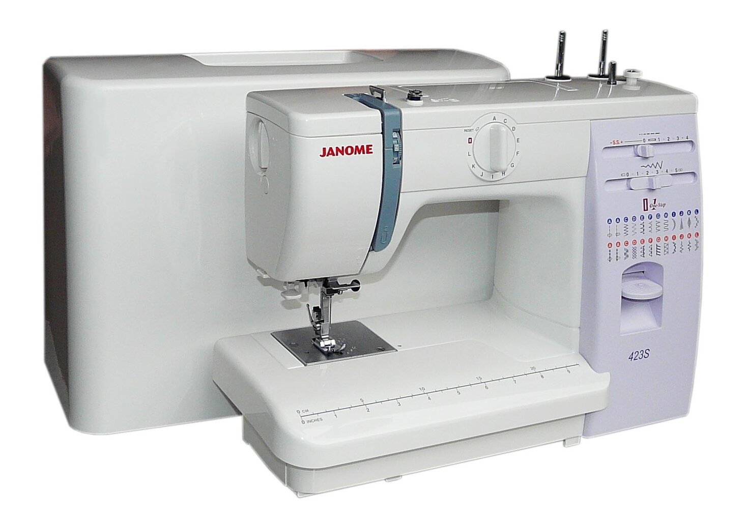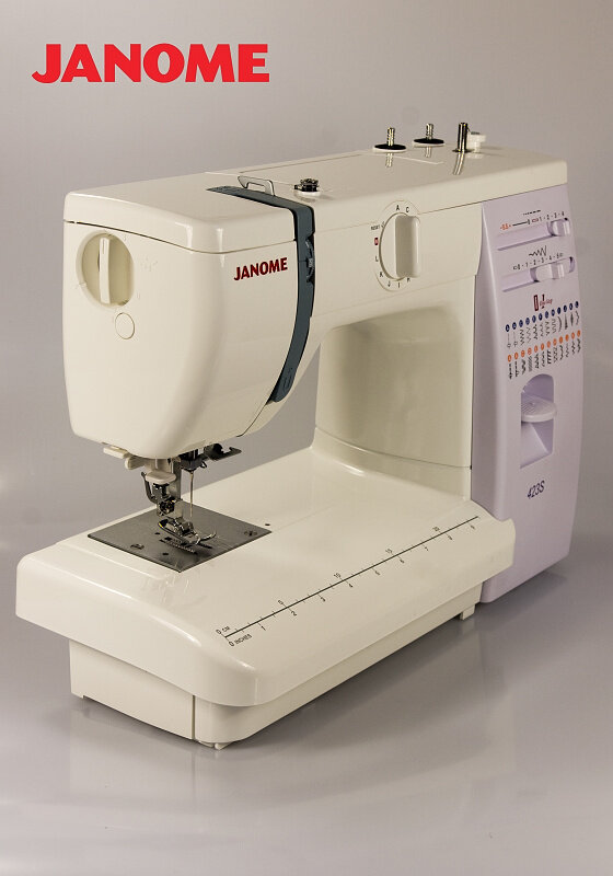 Šijacie stroje Janome 423S majú kyvný CB chapač, voľné rameno, 23 šijacích programov a 43 šijacích techník, aut. gombíkovú dierku a reguláciu prítlaku pätky. Šijacie stroje Janome 423 majú vo výbave tvrdý kryt.