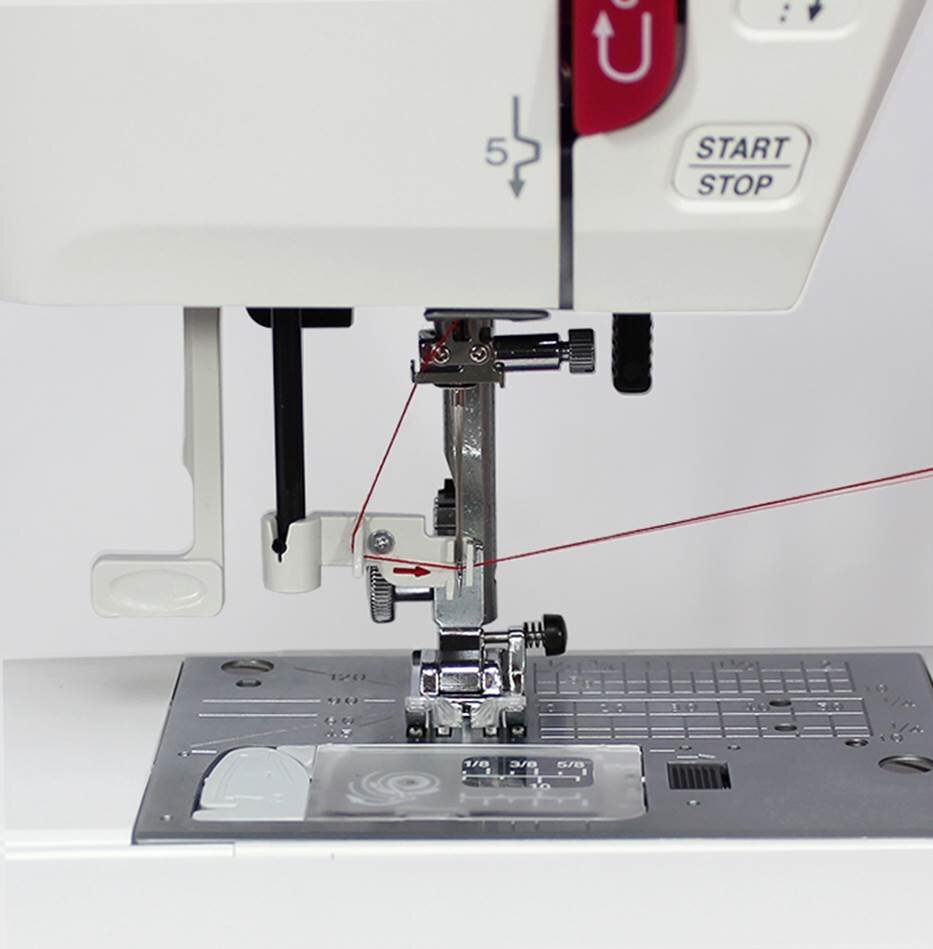 prídavný stolík nastaviteľná rýchlosť šitia automatické šitie gombíkových dierok intuitívne ovládanie automatický odstrih nite automatické zapošitie po odpojení nožného pedála, sa dá šiť automaticky s funkciou START/STOP je veľmi tichý má veľkú silu a poradí si s naozaj silnou vrstvou látok