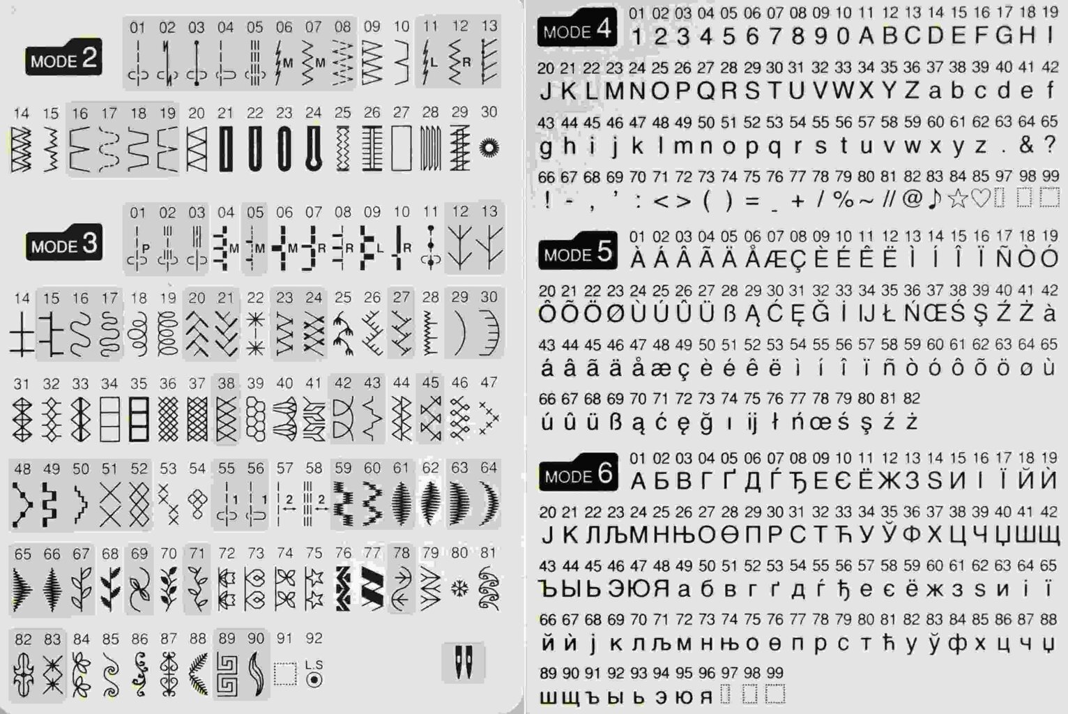 - Možnosť vyšívania písmen vrátane európskej verzie, ale bez slovenskej diakritiky