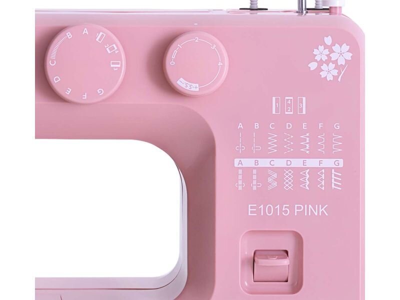 Šijací stroj Janome JUNO E1015 PINK je nový domáci šijací stroj v limitovanej ružovej farbe s jednoduchým ovládaním a overlockovými stehmi.