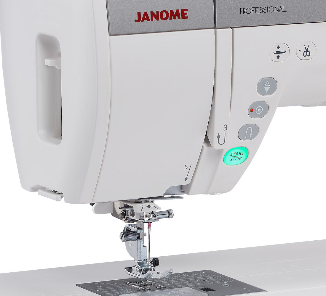 - Tlačítko START/STOP pro šití bez nutnosti použít pedál