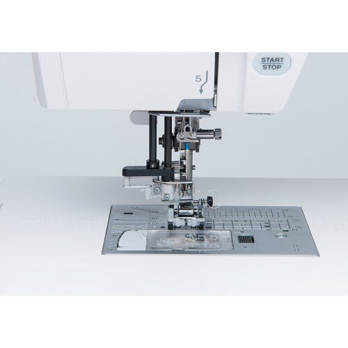 - Extra vysoký zdvih patky pro pohodlné vkládání i vysokých vrstev látky