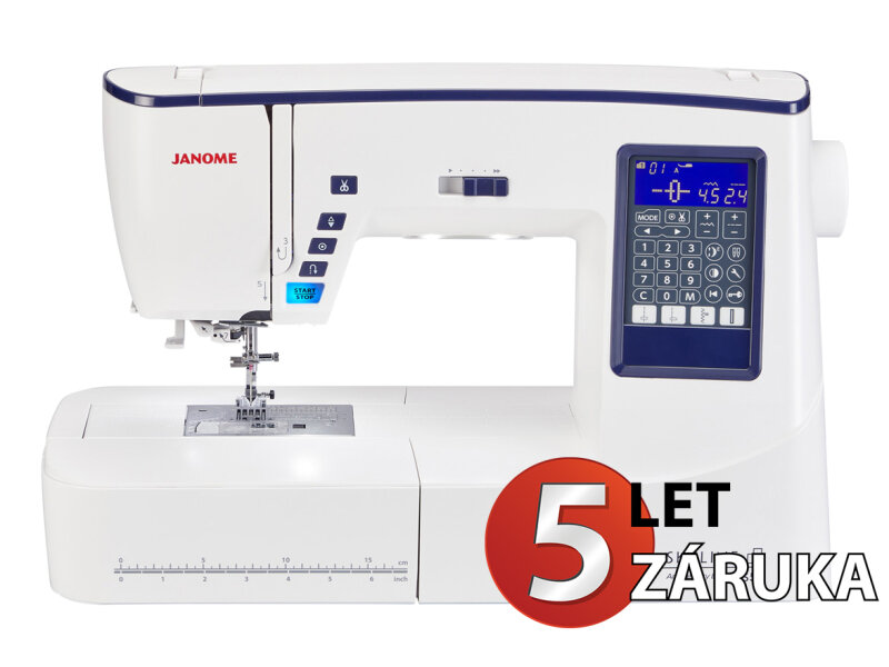 Šijací stroj Janome Skyline S5 AE je nový elektronický šijací a quiltovací stroj s prídavným stolíkom, 496 šijacími programami a extra dlhým voľným ramenom. Podsvietený LCD displej, automatický odstrih nití, horizontálny rotačný chapač a ďalšie užitočné funkcie.