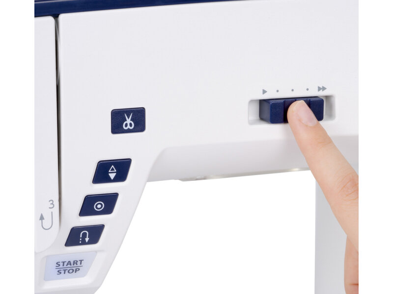 - Možnosť regulácie rýchlosti šitia priamo na stroji