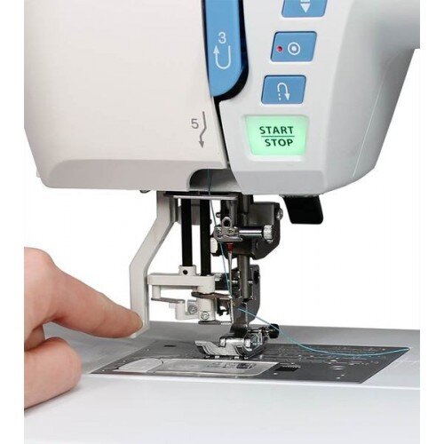 - Zabudované horné podávanie AcuFeed™ Flex - tento systém rovnomerne podáva spoločne so spodným podávačom, je skvelým pomocníkom pri šití viacerých vrstiev látky.