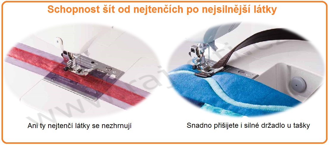 - Jednoduchý začiatok šitia silných látok alebo viacerých vrstiev (vhodné aj pri šití cez silné švy)