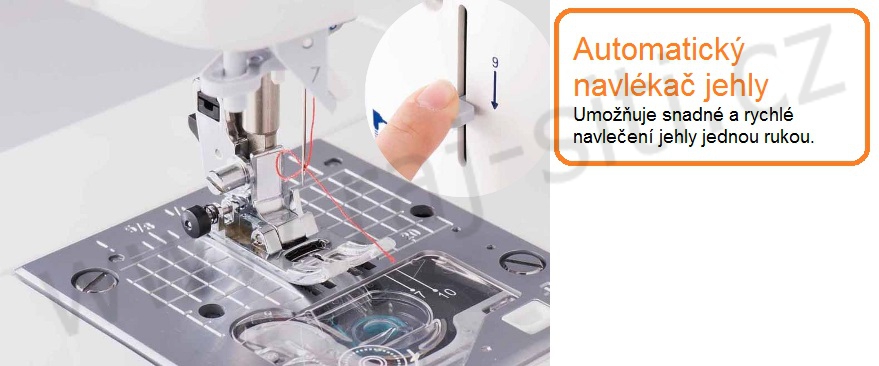 - Úplne automatický navliekač ihly - stačí iba stlačenie páčky dole