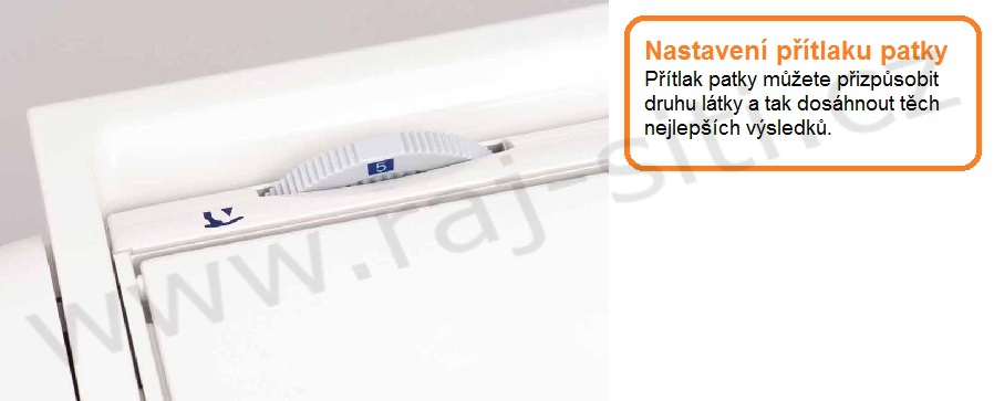 - Funkcia vznášania - možno šiť aj so zdvihnutou pätkou - prítlačnú pätku je možné zdvíhať po 0,1 mm krokoch a šiť (ideálne pri prešívaní viacerých vrstiev materiálu)