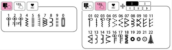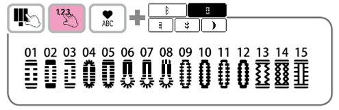 - Rýchlovoľba najpoužívanejších stehov pomocou tlačidiel