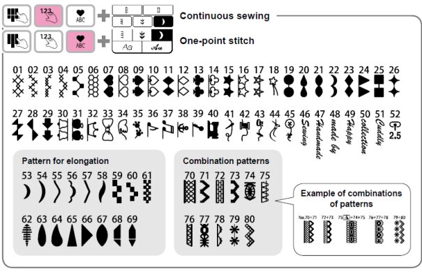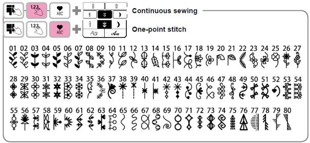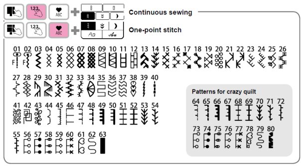 - Funkcia výberu špeciálnych quiltovacích stehov - automaticky vytvára rad originálnych stehov v náhodnom poradí