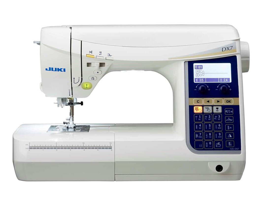 Šijací stroj Juki HZL - DX7 je nový špičkový elektronický šijací a quiltovací stroj pre domácnosť s priemyselným systémom podávania látky. Vybavený 287 druhmi stehov vr. 4 typov písma a funkcií vznášania pätky.