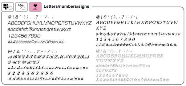- 4 typy abecied + čísel - vyšívanie monogramov