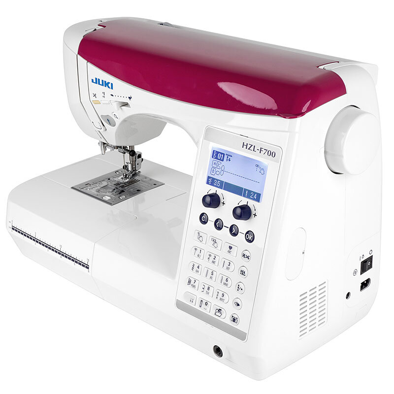 Dôležité vlastnosti: Stroj je vybavený automatickým odstrihom hornej i spodnej nite, 225 šijacími programami vr. funkcie náhodných quiltovacích stehov, 4 typy písma, priemyselným systémom podávania látky a veľkým prehľadným displejom. Súčasťou šijacích strojov Juki HZL-F700 je nožný spúšťač, ktorý umožňuje ovládať aj odstrih nite (zošliapnutím šlapátka pätou) a kolenná páka. Nový rozmer v prevliekaní nite očkom ihly prináša úplne automatický navliekač ihly, stačí iba stlačiť páčku dole a je navlečené. Užitočné elektronické funkcie umožňujú na stroji šiť aj bez použitia šlapátka (tlačidlo štart/stop) a regulovať rýchlosť šitia priamo na stroji, polohovať ihlu hore i dole a automaticky zapošívať. Obdĺžnikový systém podávania látky bežne používaný pri priemyselných strojoch zaručuje rovnomerné podávanie tenkých aj extra silných materiálov vr. rifľoviny. Súčasťou balenia je prídavný stolík na rozšírenie pracovnej plochy. Tento šijací stroj je vhodný na patchwork aj quilting a ďalšie kreatívne šitie v domácnosti.