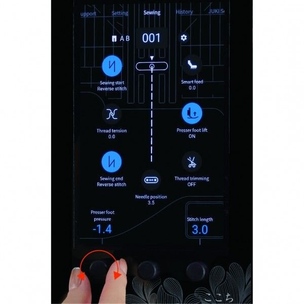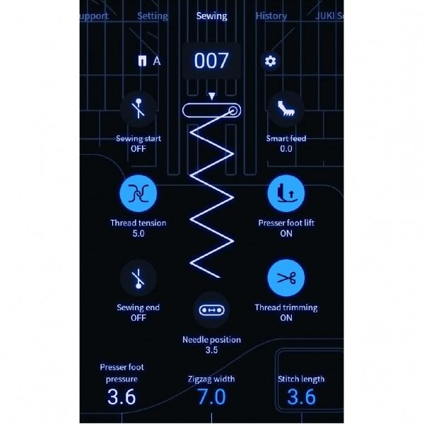 - Farebný dotykový 7" LCD displej - nastavenie a podmienky šitia si môžete skontrolovať numericky aj graficky na dotykovom displeji. Nastavenie rôznych hodnôt je intiutívne. Voľba konkrétneho typu vzoru je jednoduchšia, než kedykoľvek predtým!