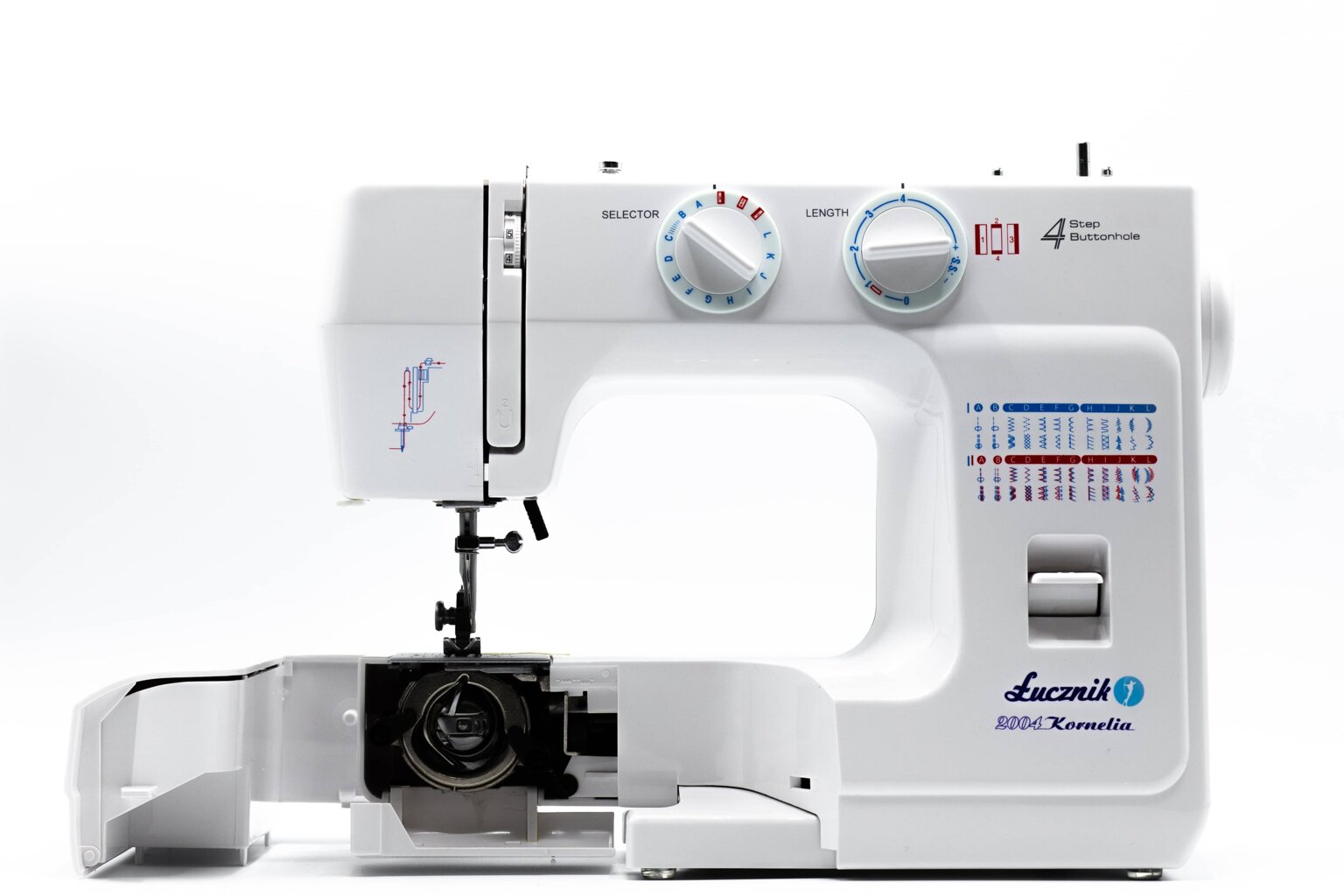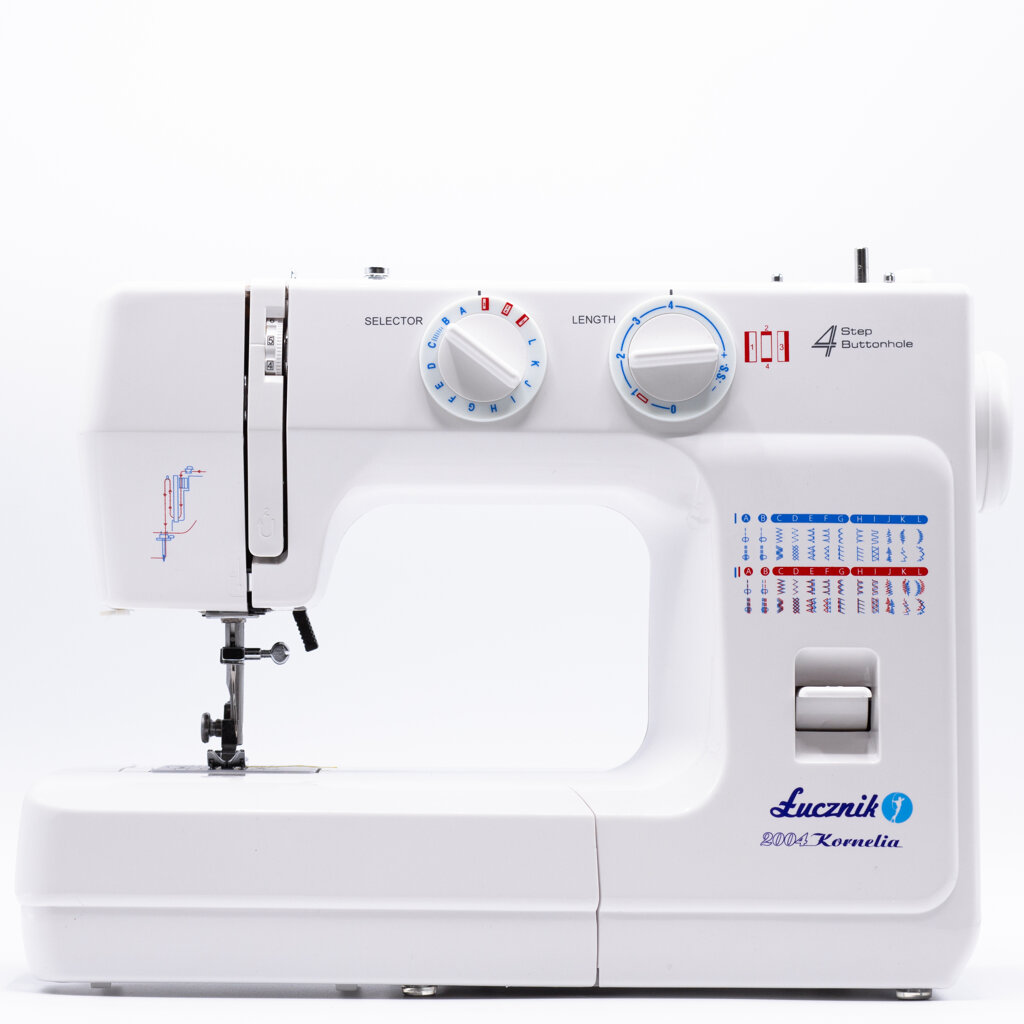 Dôležité vlastnosti: Šijací stroj Lucznik 2004 Kornelia II je šijací stroj s kovovými časťami vybavený 51 šijacími programami, voľným ramenom a celokovovým kyvným CB chapačom. Šijací stroj má množstvo užitočných funkcií ako napr. 4-krokové poloautomatické obšívanie dierky v závislosti od veľkosti gombíka, možnosť šitia dvojihlou pre dekoratívne šitie a ďalšie. Šijací stroj má tiež funkciu spätného šitia, funkciu plynulej regulácie rýchlosti šitia a plynulej regulácie dĺžky stehu. Tiež ponúka navíjanie nite na spodnú cievku. Tieto šijacie stroje umožňujú okrem bežného šitia priamym či kľukatým stehom množstvo ďalších šijacích operácií ako napr. lemovanie a zošívanie tkaniny overlockovým stehom či ozdobným saténovým stehom (zhustený cikcak steh) na dekoratívne šitie a pod.