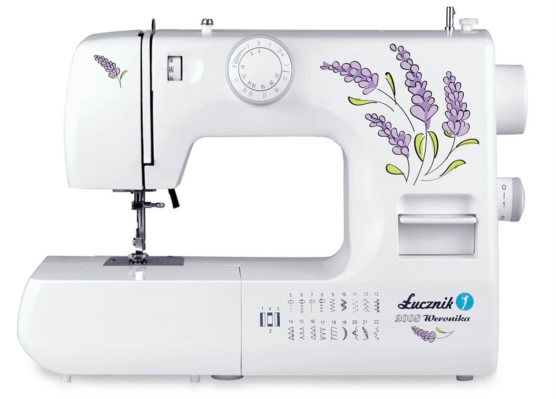 Šijací stroj Lucznik 2008 Weronika je mechanický šijací stroj do domácnosti. Šijací stroj Weronika 2008 má voľné rameno, kovový kyvný CB chapač a 22 šijacích programov vr. overlockových stehov a 4 krokové šitie gombíkovej dierky.