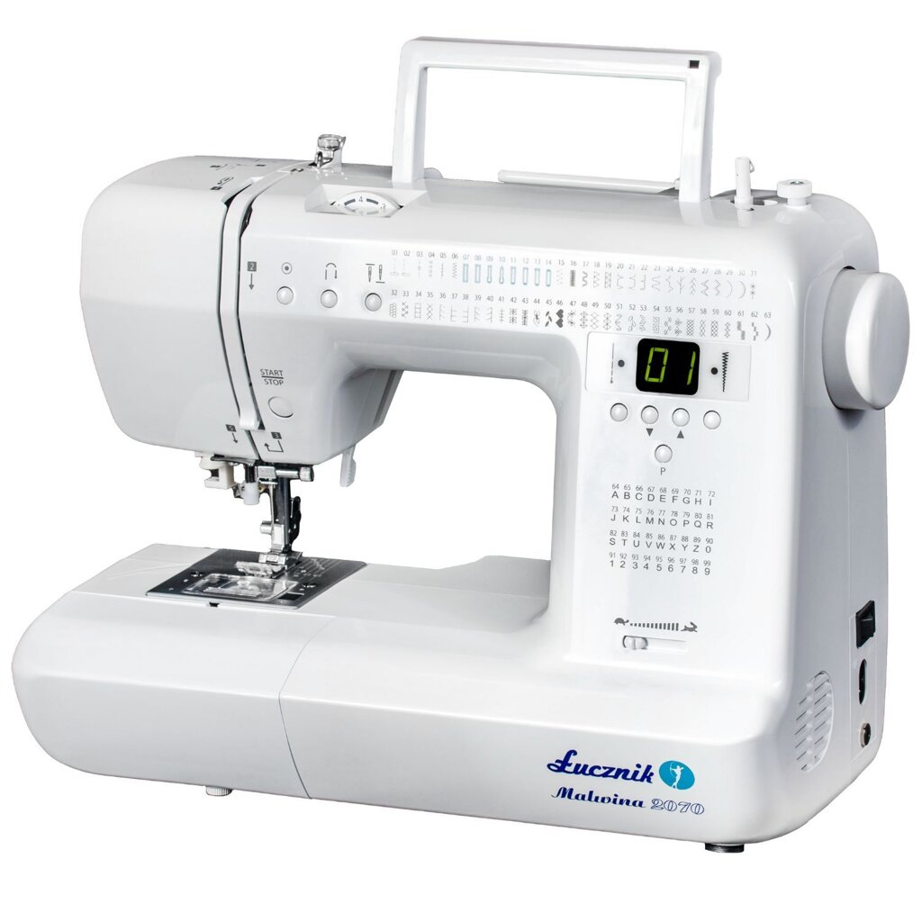 Šijací stroj Lucznik 2070 Malwina je elektronický šijací stroj pre domácnosť s LED displejom a 99 druhmi stehov vr. abecedy. Ponúka 8 typov automatickej gombíkovej dierky, horizontálny rotačný chapač a ďalšie elektronické funkcie.