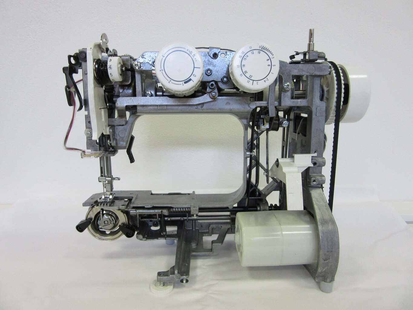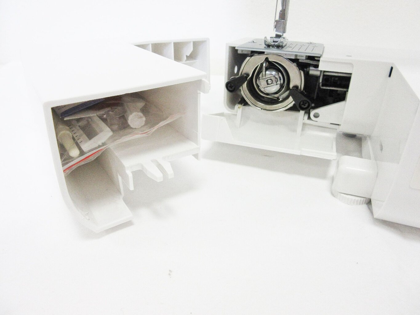 - Robusná kovová konštrukcia, v šijacom mechanizme sú použité kovové časti, vonkajšie časti stroja sú plastové