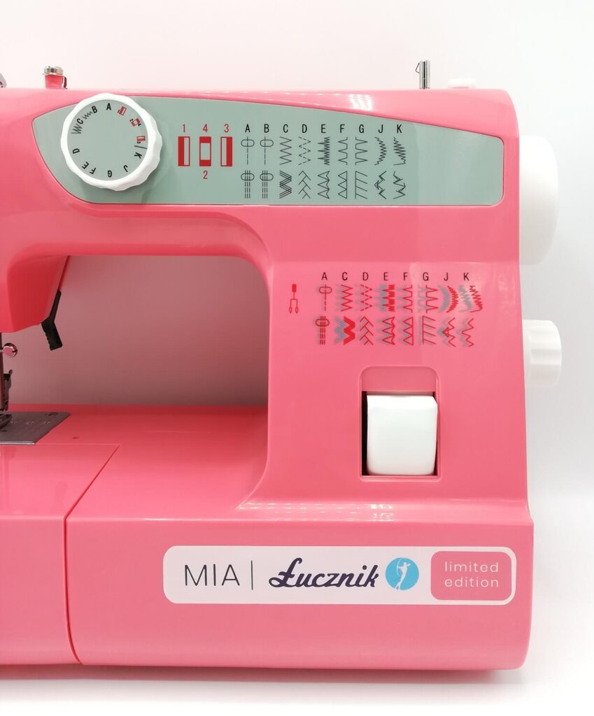 Šijací stroj Lucznik Mia je mechanický domáci stroj, ktorý je vybavený 38 šijacími programami vr. overlockových stehov, kyvným CB chapačom, voľným ramenom, 4-krokovou gombíkovou dierkou aj regulovateľnou dĺžkou stehu.
