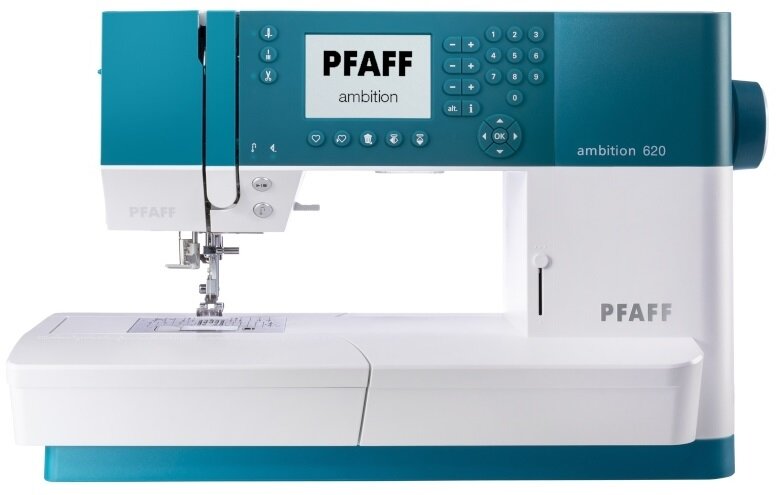 Šijací stroj Pfaff Ambition 620 je moderný elektronický šijací stroj s LCD displejom, veľkou pracovnou plochou a 136 typmi stehov. Kvalitný elektronický šijací stroj s množstvom užitočných funkcií, ktorého hlavnou prednosťou je zabudovaný systém horného podávania látky IDT (posun látky zhora aj zospodu mateirálu) a čidlo návinu spodnej nite - stroj vás upozorní, keď vám dôjde niť. Šijací stroj Pfaff Ambition 620 Quilt je ideálny pre všetky kreatívne krajčírky, ktoré hľadajú väčší komfort pri šití a moderné funkcie, ale nechcú investovať do radu Pfaff Expression.