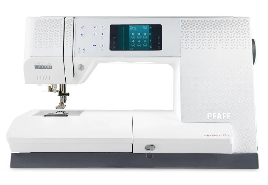 obchod@raj-sitia.skŠijací stroj Pfaff Expression 710 Special Edition je elektronickým strojom značky Pfaff. Jedná sa o špeciálnu edíciu známeho modelu Pfaff Expression 710 v novom a veľmi zaujímavom dizajne. Je to špičkový elektronický šijací stroj s grafickým dotykovým displejom, ktorý zobrazuje potrebné informácie a odporúčania týkajúce sa nastavenia šijacieho stroja. Šijací stroj má inovačnú nemeckú konštrukciu s veľkým pracovným priestorom na pohodlné šitie väčších kusov materiálu, patchwork či quilting. Šijacie stroje Pfaff Expression 710 sú určené pre skúsených krajčírky, ktoré chcú vysoko kvalitný šijací stroj s vyšším programovým vybavením a šitie je pre nich veľkým koníčkom. Výtvory získajú profesionálnejší vzhľad. Stroj je vybavený najúčinnejším systémom zabudovaného horného podávania IDT.