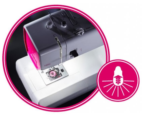 Dôležité vlastnosti: Obsahuje 23 druhov stehov, horizontálny rotačný chapač, automatickú gombíkovú dierku šitú na 1 kroky a voľné rameno Veľkou výhodou tohto šijacieho stroja je farebný kufrík alebo skôr pevný plastový kryt v cene stroja. stehu od 0,5 do 4 mm, šírku stehu až do 6 mm aj prítlak pätky.