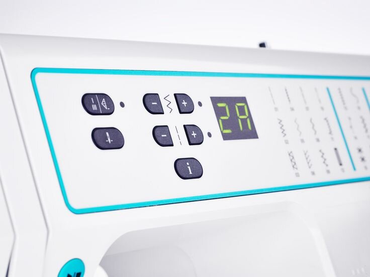 Dôležité vlastnosti : Obsahuje 27 druhov stehov vr. overlockových a dekoratívnych, horizontálny rotačný chapač s priehľadnou krytkou a 1 typ automatickej gombíkovej dierky šité na 1 krok. Stroj dokáže šiť aj bez použitia šliapátek a, vďaka tlačidlu štart/stop. Zároveň si môžete pohodlne polohovať ihlu hore a dole. Na stroji je možné plynule regulovať dĺžku stehu od 0,5 do 4 mm, šírku stehu až do 6 mm aj prítlak pätky.
