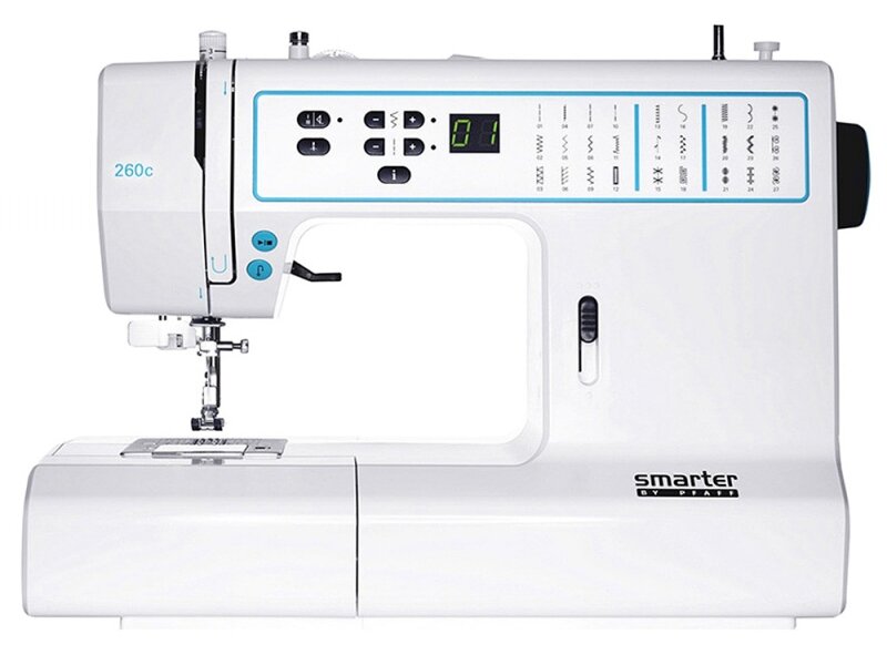 Šijací stroj Pfaff Smarter 260 C je elektronický šijací stroj moderného dizajnu značky Pfaff, vybavený displejom, 27 druhmi stehov vr. overlockových, 1 typom automatickej gombíkovej dierky a rotačným chapačom.