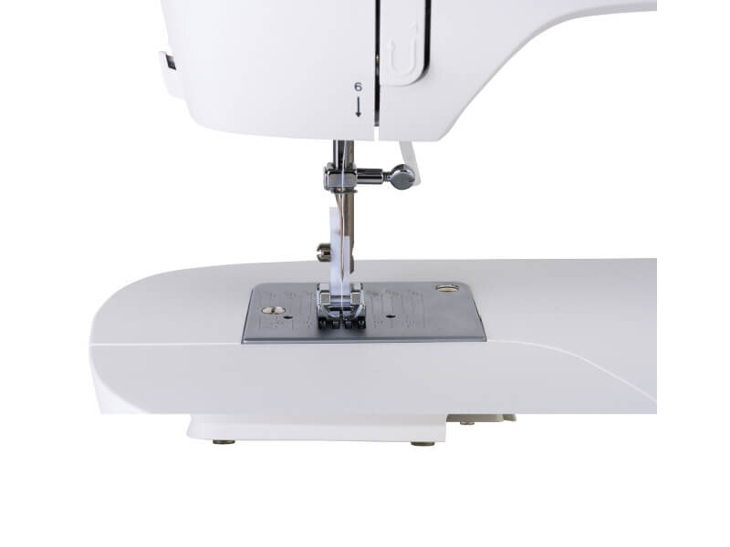 Dôležité vlastnosti : Šijací stroj má 6 druhov stehov, voľné rameno, 4-krokové šitie gombíkovej dierky, možnosť šitia dvojihlou a ďalšie funkcie.