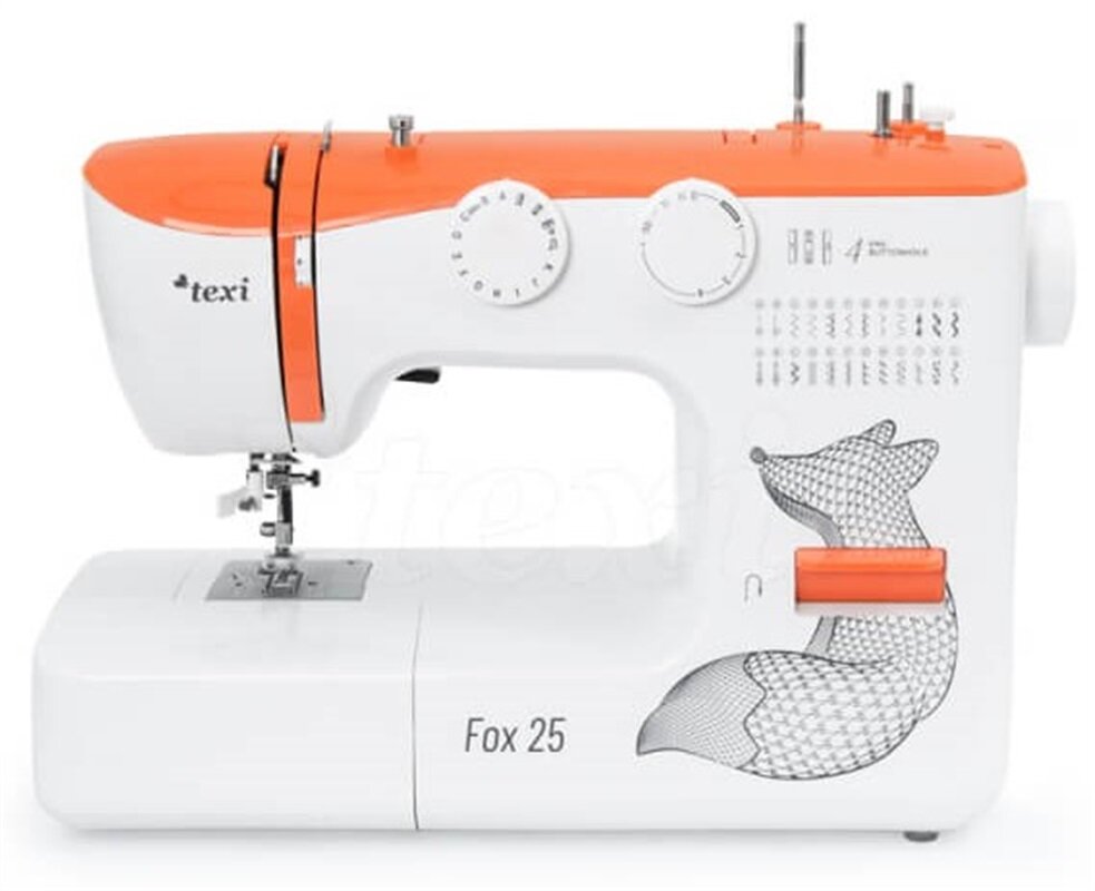 Šijací stroj Texi Fox 25 je nový mechanický šijací stroj na základné aj bežné domáce šitie. Ponúka 25 šijacích programov, kyvný CB chapač, voľné rameno, 4 krokovú gombíkovú dierku a možnosť regulácie dĺžky aj šírky stehu.
