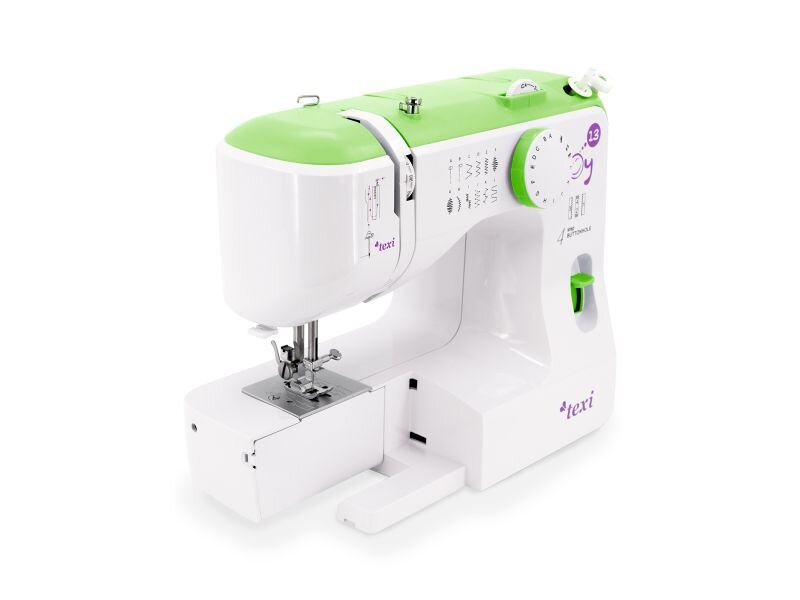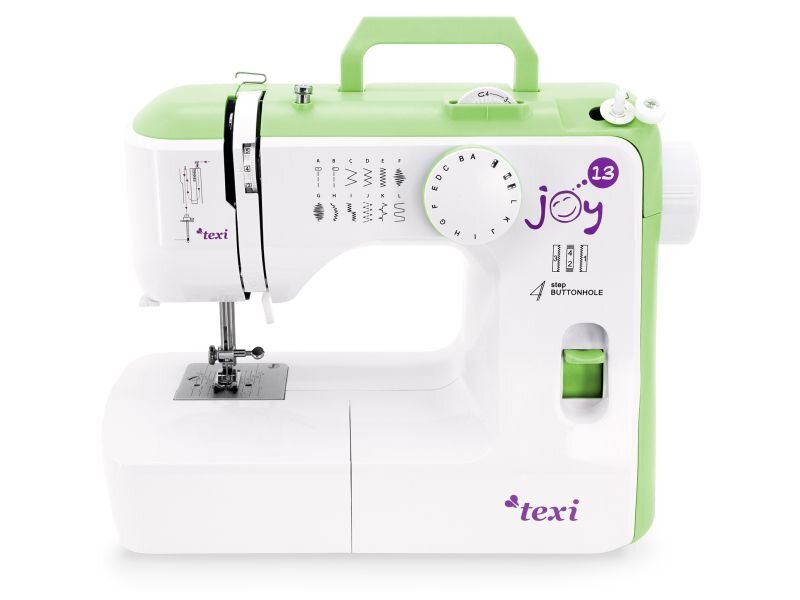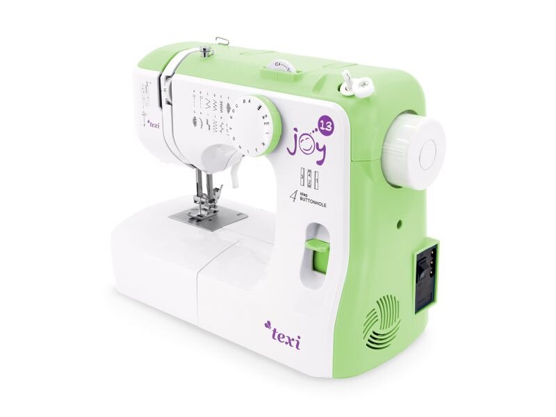obchod@raj-sitia.skŠijací stroj Texi Joy 1303 Green je mechanický šijací stroj z nového "farebného" radu šijacích strojov Texi určený pre základné a príležitostné šitie. Stroj ponúka 13 typov šijacích programov vr. 4 krokové gombíkové dierky, kyvný CB chapač, voľné rameno na šitie rukávov či nohavíc a úspornejšie LED osvetlenie pracovnej plochy. Na stroji je možné regulovať dĺžku stehu, šírka stehu je prednastavená (stroj má 3 typy kľukatých stehov s rôznou šírkou). Veselé farebné prevedenie stroja rozžiari Váš interiér. Farebné prevedenie zelené. Stroj je dostupný aj vo farbe modrej, fialovej a ružovej.