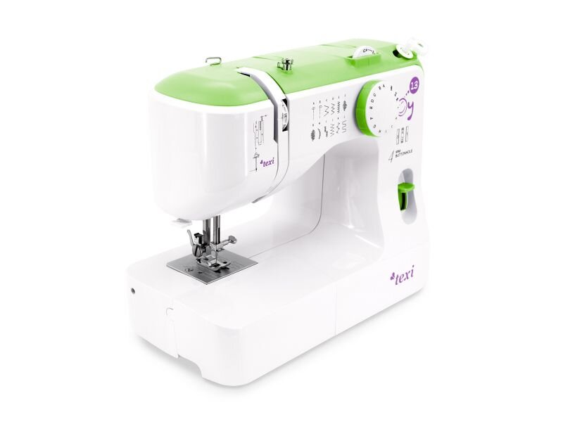 Šijací stroj Texi Joy 1303 Green je mechanický šijací stroj na základné a príležitostné šitie. Ponúka 13 šijacích programov, kyvný CB chapač, voľné rameno, 4 krokovú gombíkovú dierku a LED osvetlenie.