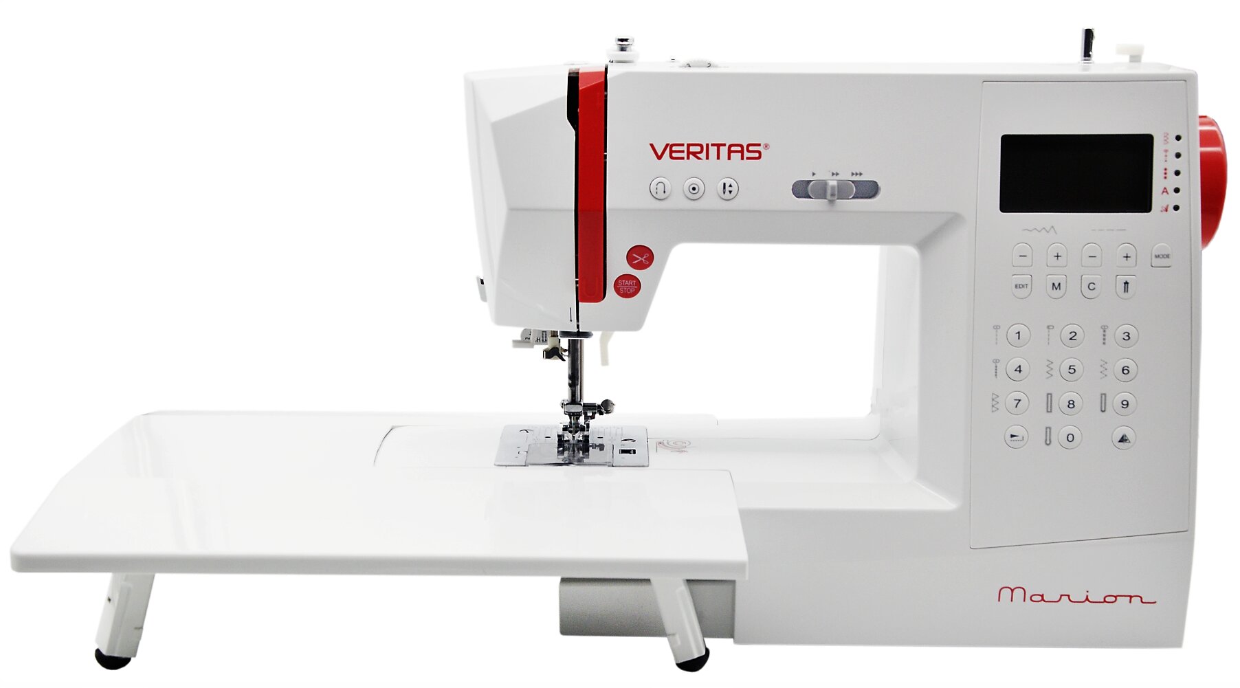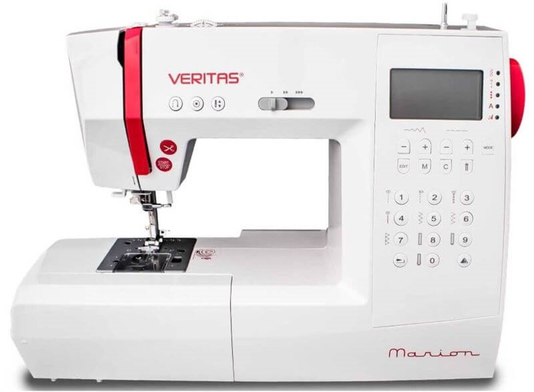 Dôležité vlastnosti: Šijacie stroje Veritas Marion sú vybavené 310 šijacími programami vr. 2 typov abecedy a niektorých znakov, overlockových a dekoratívnych stehov, horizontálnym rotačným chapačom, 10 typmi automatickej gombíkovej dierky a voľným ramenom . Pamäť stroja umožňuje uloženie kombinácií dekoratívnych stehov a písmen na vyšívanie monogramov (bez diakritiky). Stehy je možné navyše zrkadlovo otočiť. Šijacie stroje Veritas Marion majú automatický odstrih nite, regulátor rýchlosti šitia na stroji, tlačidlo START/STOP pre šitie bez šlapátka a polohovanie ihly hore/dole. Kvalitný LCD displej zobrazuje zvolený steh, nastavenú dĺžku a šírku stehu, vhodnú pätku pre nastavený steh, polohu ihly, správne napätie hornej nite a ďalšie užitočné informácie. Veritas Marion bude skvelým pomocníkom kreatívnym krajčírkam, ktoré hľadajú multifunkčný šijací stroj s veľkým množstvom funkcií a možnosťou vyšívania abecedy.