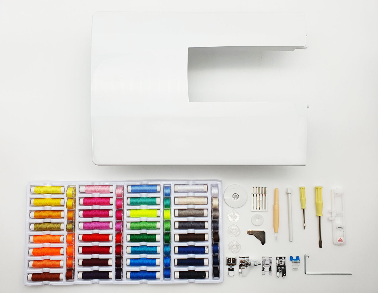 Radi by ste si porovnali tento šijací stroj s funkciami ostatných šijacích strojov predávanými na Raji šitia? Využite náš porovnávač. Nájdete ho vpravo nad týmto popisom. Stačí zatrhnúť kolonku „Porovnať tovar“ pri viacerých šijacích strojoch a zobrazí sa Vám prehľadná tabuľka s porovnaním pre Váš jednoduchší výber.