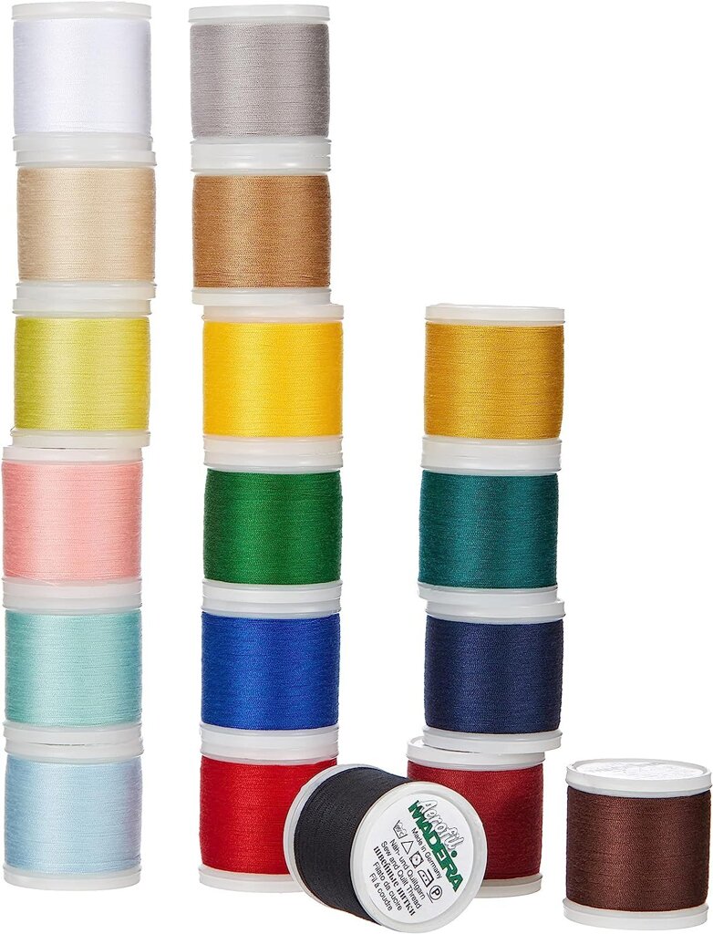 Šijacia niť Madeira Aerofil 120 box (18x200m) je prenosný plastový box, ktorý obsahuje 18 ks kvalitných polyesterových šijacích nití Aerofil č.120 v návine 200 m.