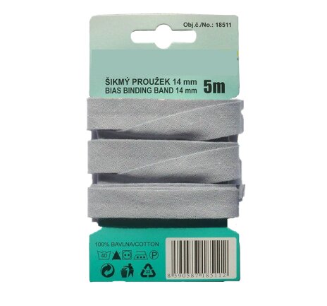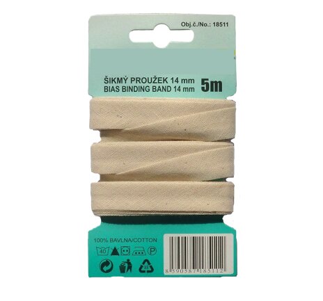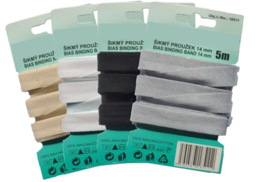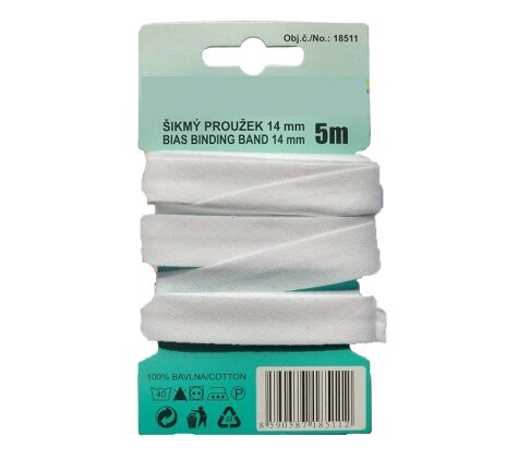 obchod@raj-sitia.skŠikmý prúžok 14mm/5m založený do stredu sa používa na začisťovanie a lemovanie okrajov odevov alebo bytového textilu napr. obrusov, vankúšov atď. Je udávaný v šírke, na akú je zažehľovaný čiže 14 mm. Po našití má polovičnú šírku tj. 7 mm.