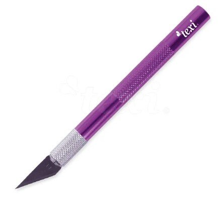 obchod@raj-sitia.skSkalpel TEXI + 5x náhradné čepele je ideálnym pomocníkom na jemnú prácu. Skalpel má rebrovanú rukoväť, ktorá slúži ako protišmyková a skalpel sa tak dobre drží v ruke. Skalpel reže s vysokou presnosťou najrôznejšie materiály od papiera, cez lepenku, textíliu, kožu až po fólie, gumy, tapety, linoleoum a ďalšie. Skalpel je dodávaný s 5 vymeniteľnými nožmi a obsahuje ochrannú čiapočku.