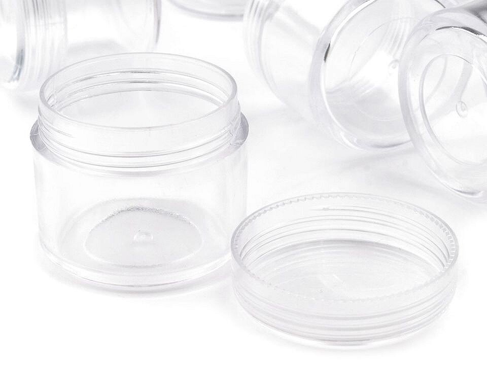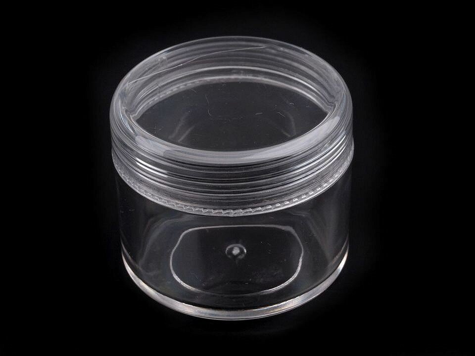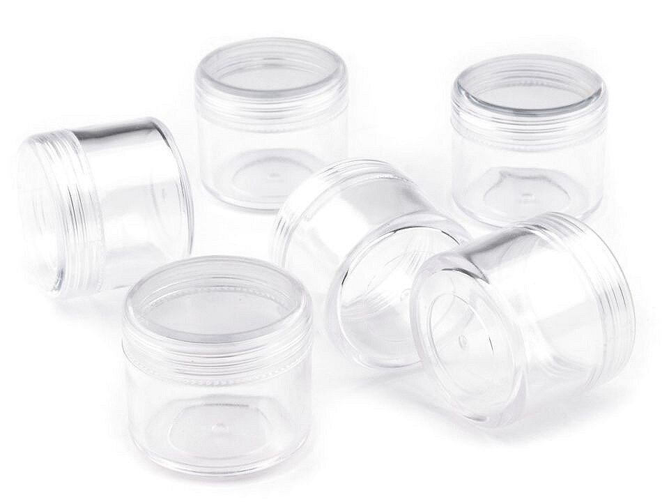 Skrutkovacie krabičky (3,2x3,8cm) na kreatívne a šijacie potreby je priehľadná krabička so skrutkovacím viečkom. Poslúži na uloženie kanyrov, rokajlov, flitrov, gombíkov, špendlíkov a iných potrieb.