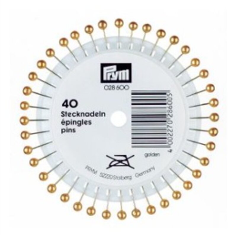 Špendlíky s perleťovou hlavičkou - PRYM je sada 40 kusov špendlíkov so zlatou hlavičkou od značky PRYM.