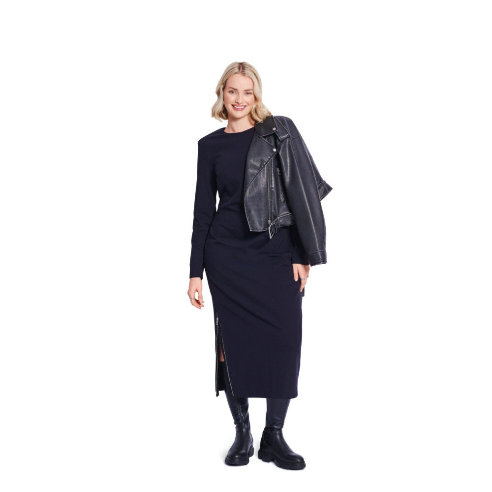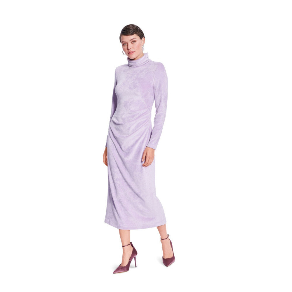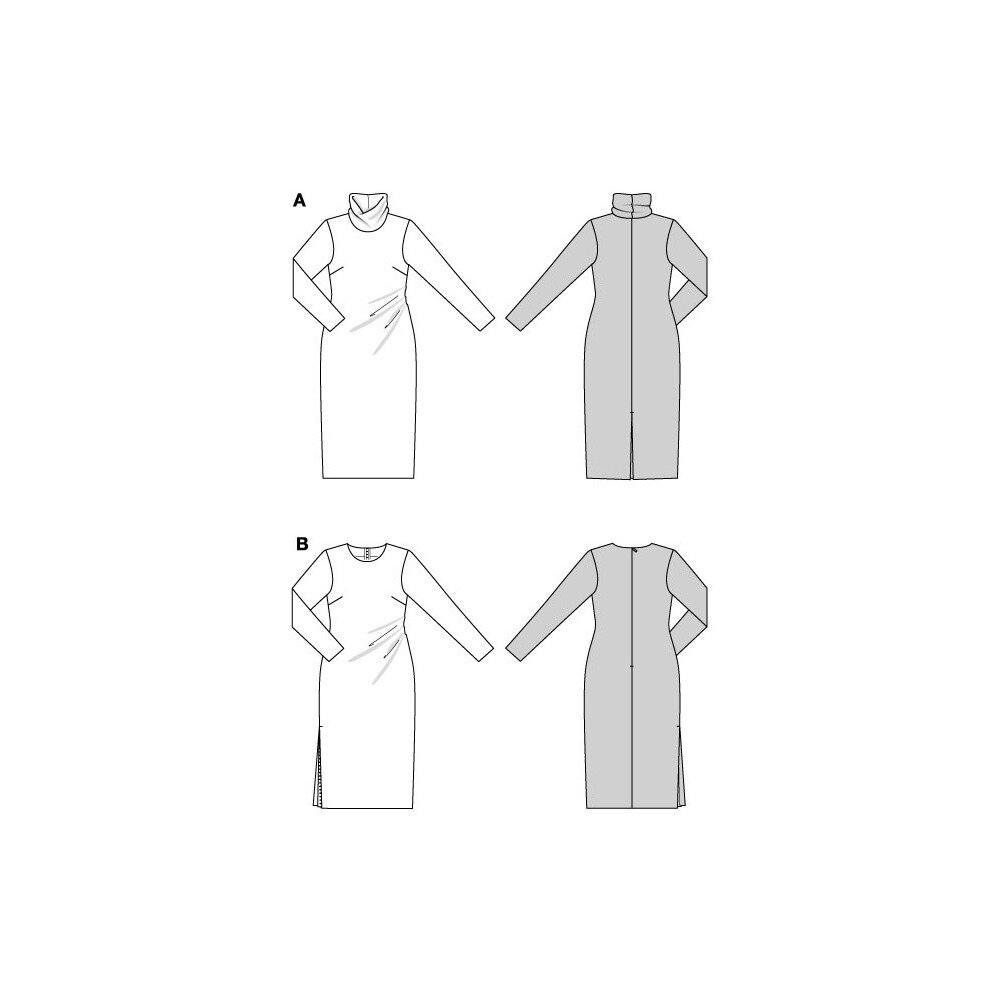 Střih Burda červený 5684 - úzké rolákové šaty, midi šaty s řasením je soubor jednoduchých střihů na ušití stylových šatů na 2 způsoby.