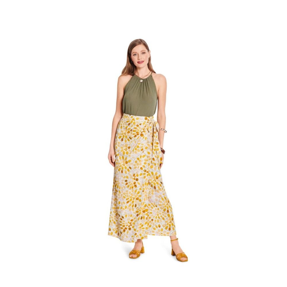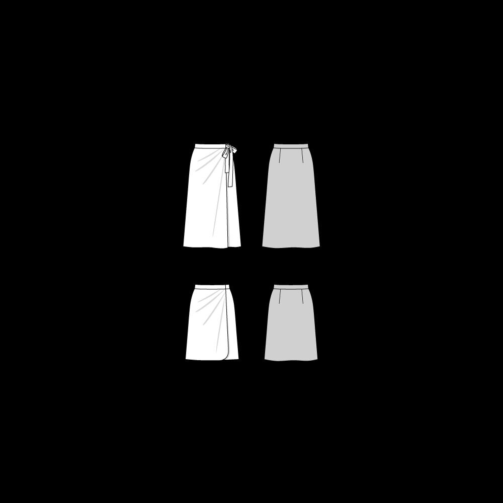 Strih Burda červený 5725 - zavinovacia sukňa, sukňa so skladmi je súbor jednoduchých strihov na ušitie dámskej sukne.