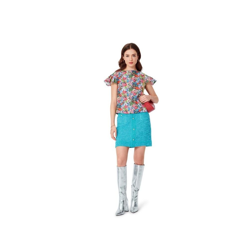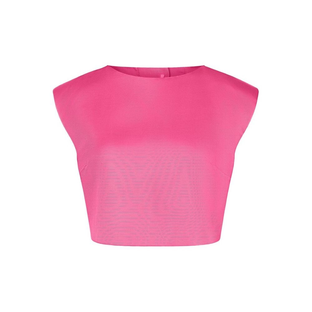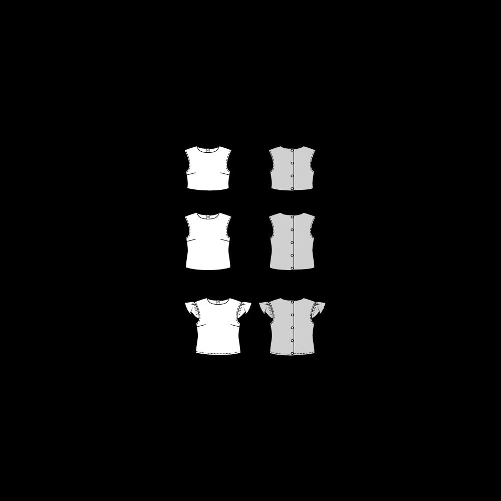 Strih Burda červený 5727 - blúzka s prepínaním na chrbte, top bez rukávov, crop top je súbor jednoduchých strihov na ušitie dámskej blúzky.