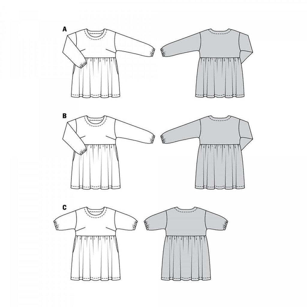 Strih Burda červený 6055 - voľné šaty, pohodlné šaty je súbor elegantných a jednoduchých strihov na voľné šaty a pohodlné šaty.