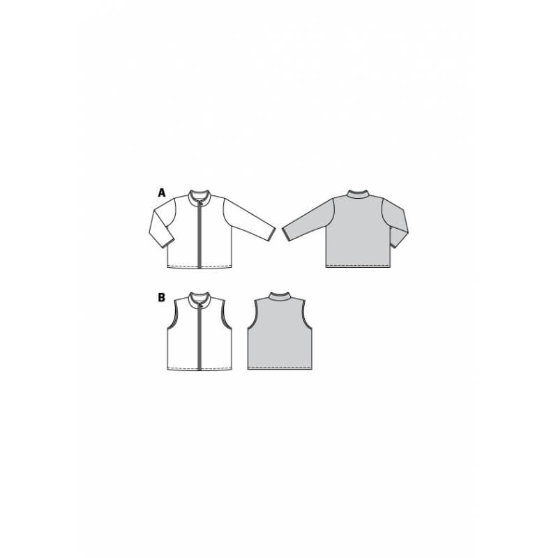 Strih Burda červený 9290 - detská bunda na zips, vesta je súbor jednoduchých a pekných strihov na detskú bundu so zipsom, vestu
