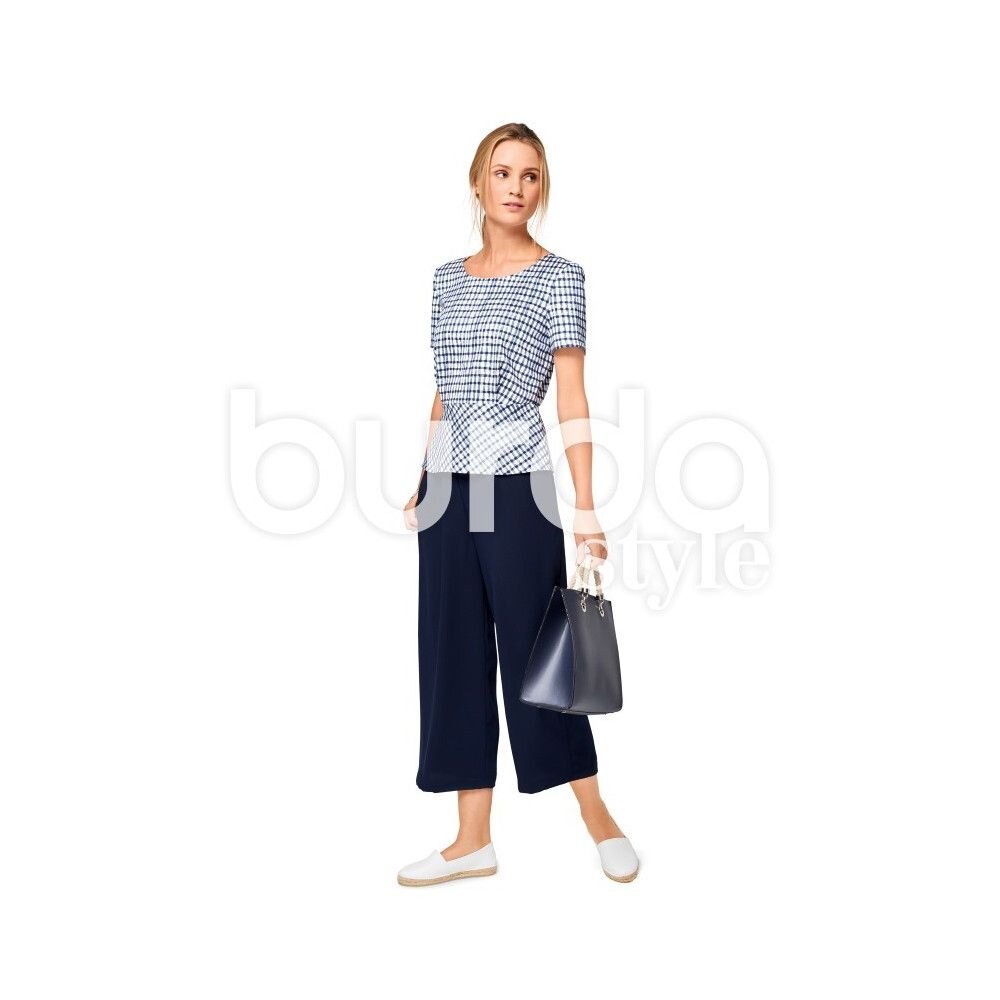 obchod@raj-sitia.skStrih Burda modrý 6516 - overal a nohavice so širokými nohavicami, top peplum