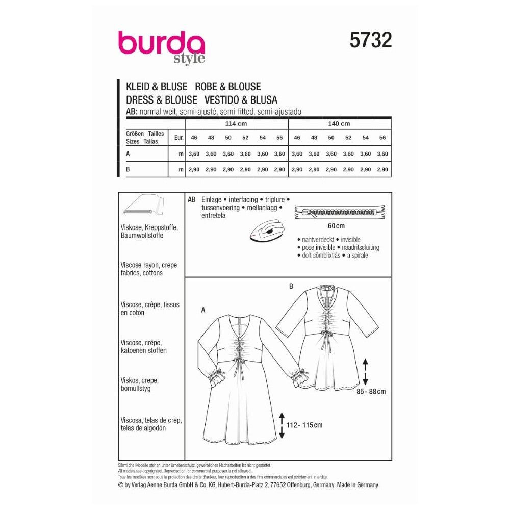 Strihy sú chránené autorskými právami spoločnosti Verlag Aenne Burda, GmbH & Co, preto nie je možné rozbalený strih vrátiť. Reprodukcia a kopírovanie sú pre komerčné účely zakázané.