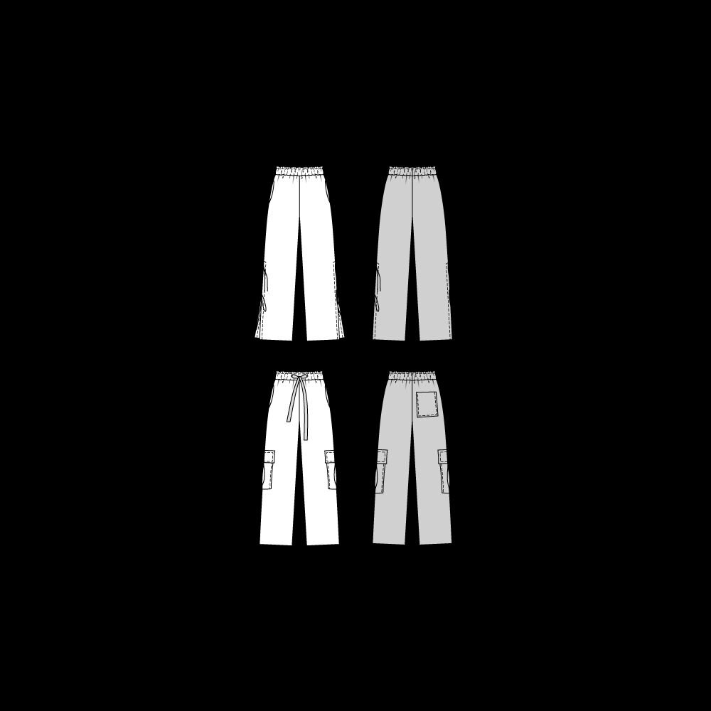 Strih Burda zelený 5743 - nohavice s gumou v páse, saténové nohavice je súbor jednoduchých strihov na ušitie letných nohavíc.